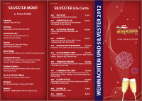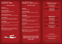 25. und 26.12.2012 - 1. und 2. Feiertag - geöffnet ab 12.00 Uhr bis 24.00 Uhr mit einem feinen Weihnachtsmenü und einem feinen vegetarischen Weihnachtsmenü