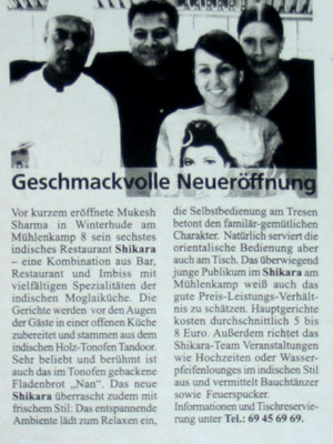 NEUERÖFFNUNG eines neuen Shikara-QUICK-Restaurants: Seit kurzem in der Taubenstraße 21, 20359 Hamburg --> Menükarte anschauen